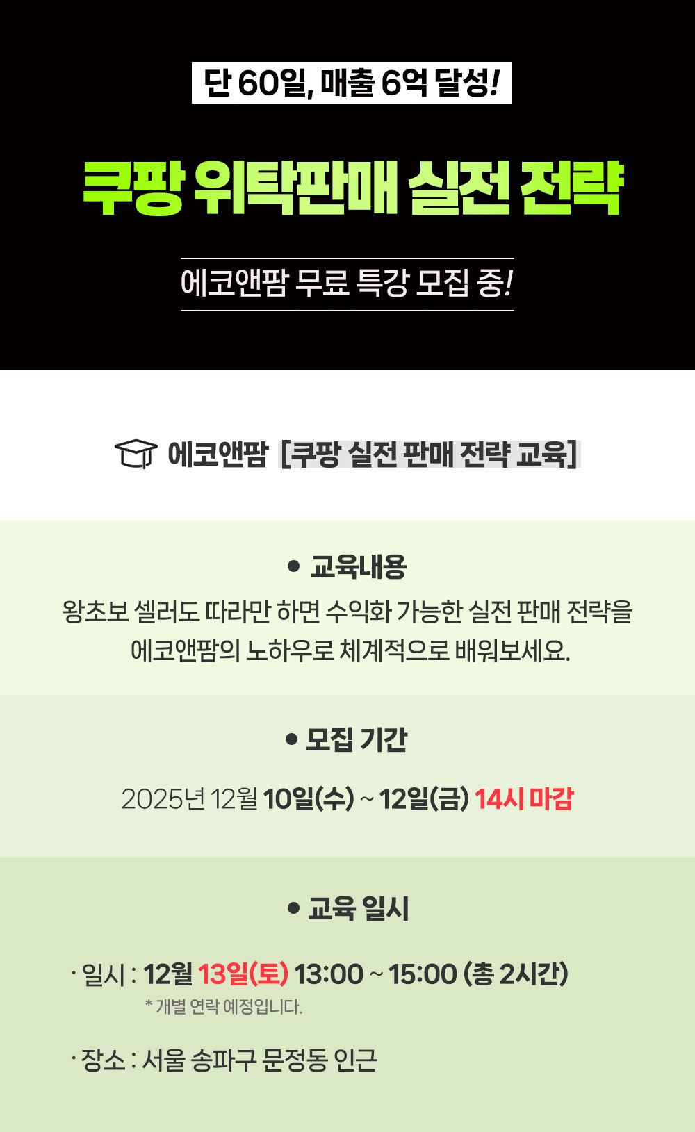 📢 [무료교육 모집] 에코앤팜 셀러 무료특강